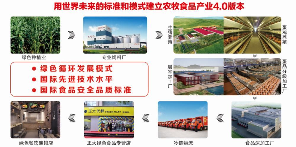 自1994年以来,正大集团先后在内蒙古投资设立了内蒙古正大有限公司、内蒙古正大食品有限公司、内蒙古卜蜂畜牧业有限公司等7家现代化农牧食品企业,着力打造集种植-育种-养殖-饲料加工-屠宰加工-食品深加工-冷链物流-零售-餐饮为一体的全产业链发展模式,实现“从农场到餐桌”全程绿色、安全、可追溯。