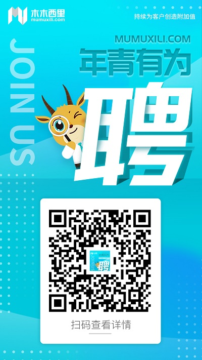 创业公司快速发展期,机会和机遇不言而喻!年轻的企业,年轻的小伙伴,木木西里是有梦想、有拼劲、有志向的年轻人豪情拼搏、成就自己、成就事业的舞台!如果你也有梦想,这里一定是你追寻未来最好的起点!期待你的加入,我们一起扬帆远航!