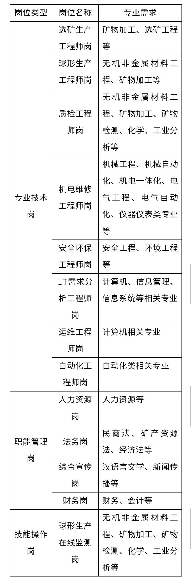 4、身心健康,吃苦耐劳,热爱矿业、材料行业,接受在矿山生产一线工作;